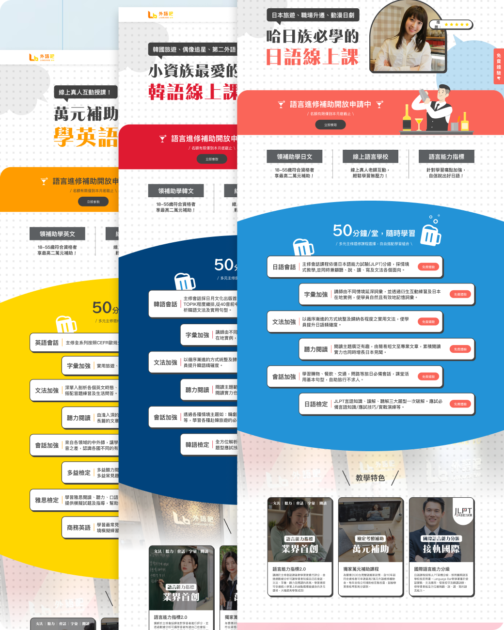 完成網站視覺風格設計,包括色彩、版面與圖示,再進行前端切版與程式編寫,確保網站在不同裝置上均有良好響應,呈現高度一致的視覺效果。